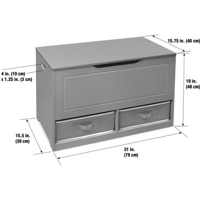 - Unique toy and storage chest and a kid’s bench combined into one versatile unit