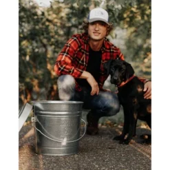 Behrens 6gal Embossed “Feed & Seed” Galvanized Steel Locking Lid Storage Can Silver