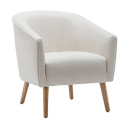 Mid Century Button-Tufted Upholstered Accent Chair Set With Linen Fabric And Ottoman-ModernLuxe